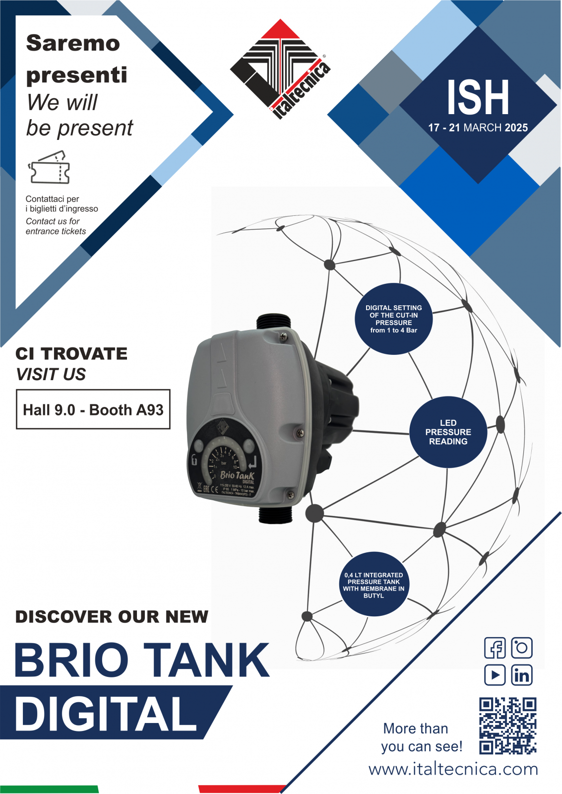 ISH 2025 - FRANKFURT By omar_97 Posted on february 24, 2025 0 Comments ITALTECNICA will be present at the ISH Fair in Frankfurt from 7 to 21 March 2025. We look forward to seeing you at our booth A29 in hall 9.0 Come and discover all the news from the Italtecnica world.
